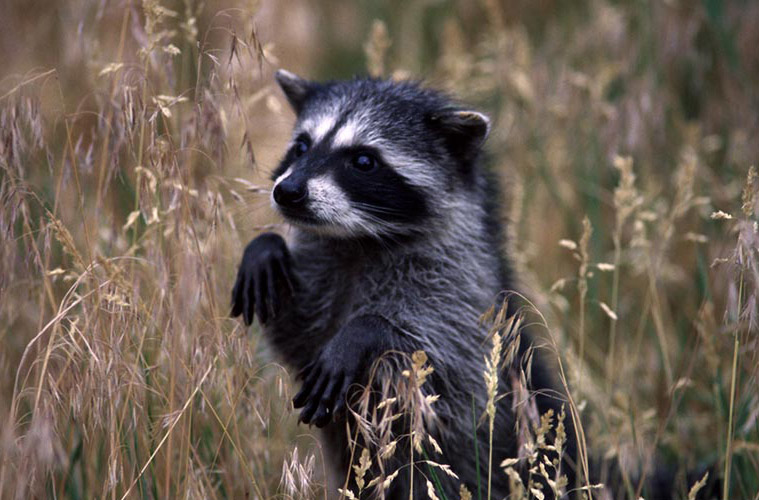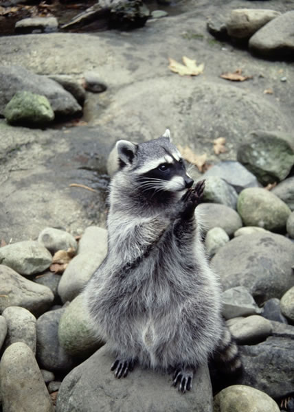 The name raccoon is from the Powhatan word aroughcun which means "he scratches with his hands." Captain John Smith was the first European to write about the raccoon in 1608. |