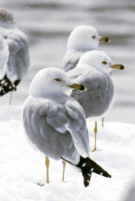 The ring-billed gull makes its home on lakes and rivers. It may move to the ocean in the winter. | |