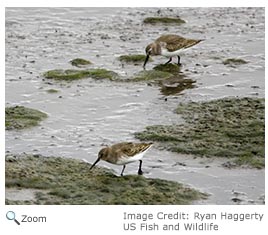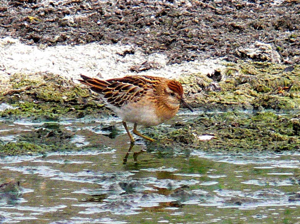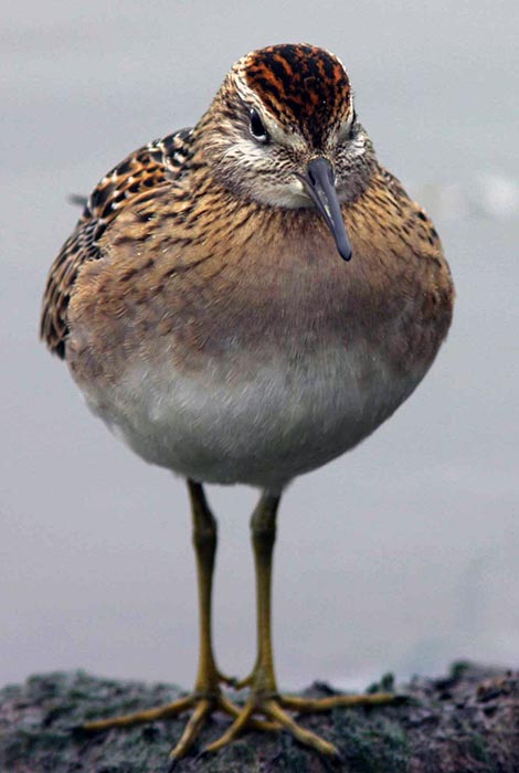 The sharp-tailed sandpiper can be found in grassy areas of coastal marshes and on tidal flats. |