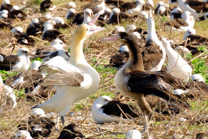 Short-tailed albatrosses begin breeding when they are 6-7 years old. Pair mate for life and return to the same nesting site year-after-year.