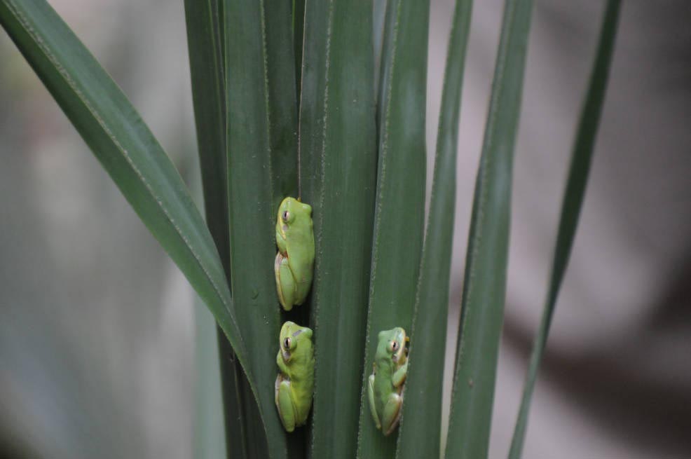 The squirrel treefrog is nocturnal,but it is sometimes seen during the day when it is raining. In fact, it is sometimes called the rain frog! During the day, it is found resting in cool, moist, shady places like under bark, on the underside of palm leaves, and in hollows in trees.