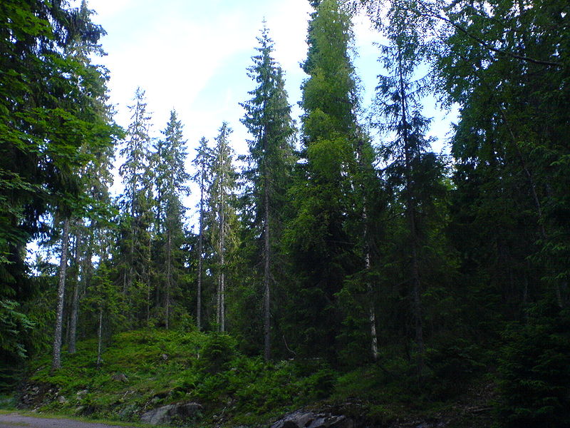 Ready for Snow! Coniferous trees like spruce, hemlock, pine and fir are commonly found in the taiga. Most coniferous trees are evergreen and are specially adapted to survive in cold weather and snow. Evergreen trees are cone-shaped to help snow slide off them so the branches won't break. The leaves or needles of evergreen trees lose less water than other kinds of leaves. This also helps them survive. Some broad-leaved trees like the birch have adapted to the taiga. The birch is very flexible and doesn't break easily when covered with ice and snow! | |