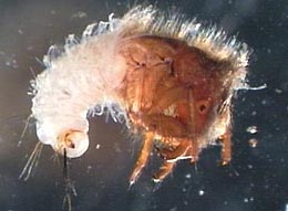 The bodies and wings of the adults in this order are covered with long silky hair or setae. In many of the species in this family, the adults have no mouths and they die shortly after mating. Caddisfly larvae live in the water, and many species spin silk cases and nets. Some species even include stones, leaves, sand, and twigs in their weaving! Net-making larvae use their nets to trap food. Case-making larvae use their case as a place to retreat. The larvae often add to their cases throughout their larval stage, and the cases can become very elaborate! |