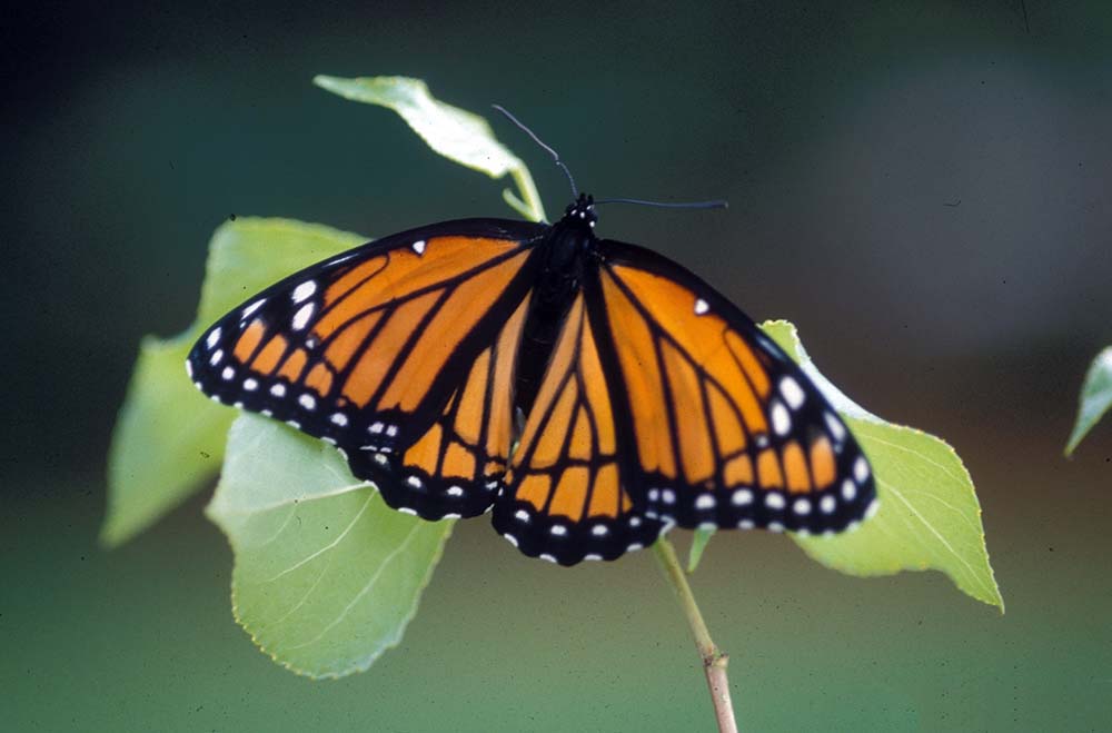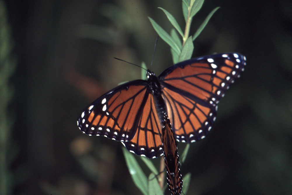 The viceroy butterfly lives in meadows, marshes, swamps, and other wet areas with willow, aspen, and poplar trees. |