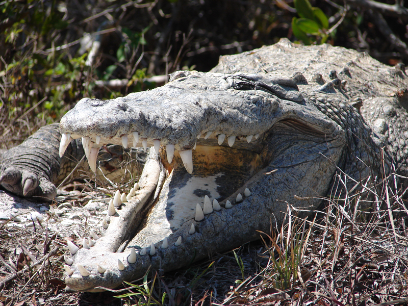 Look at Me! Many animals use visual displays to attract a mate. A female American crocodile tries to get the attention of a male by lifting her head and showing her neck. She will also use tactile communication and rub up against the side of the male's head and neck. This lets the normally aggressive male know that she is not aggressive!