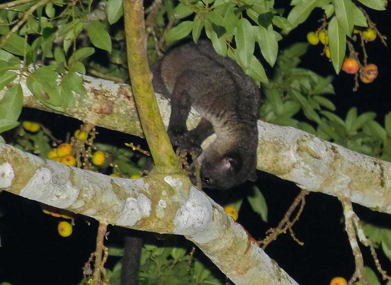 The large Indian civet eats fruit from a range of trees as well as rodents, insects and crabs.