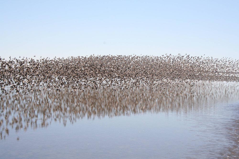 Behavior During migration, the western sandpiper may gather in large flocks made up of hundreds of birds.